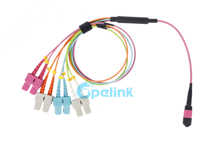 OM4 MPO-SC Fiber Branch Patchcord 8 núcleos: cable de ruptura de fibra óptica de alta densidad para centros de datos